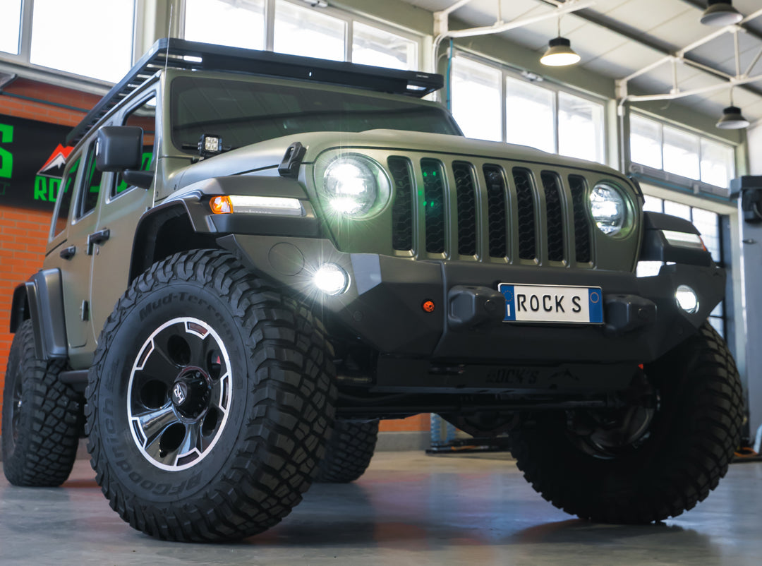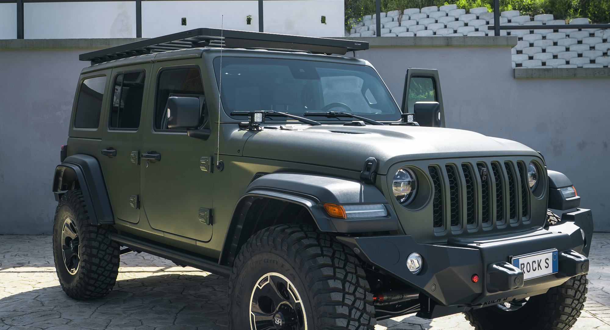 This fully equipped and type-approved JLU 4XE Rock's Edition, with its high-performance Rock's 4x4 suspension, can tackle any off-road route or travel in maximum comfort on the highway.